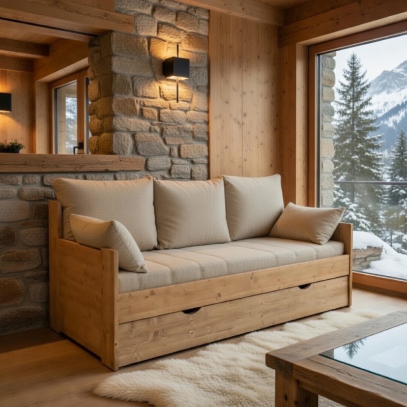 Notre banquette gigogne montagne bois massif traverse les modes avec aisance.