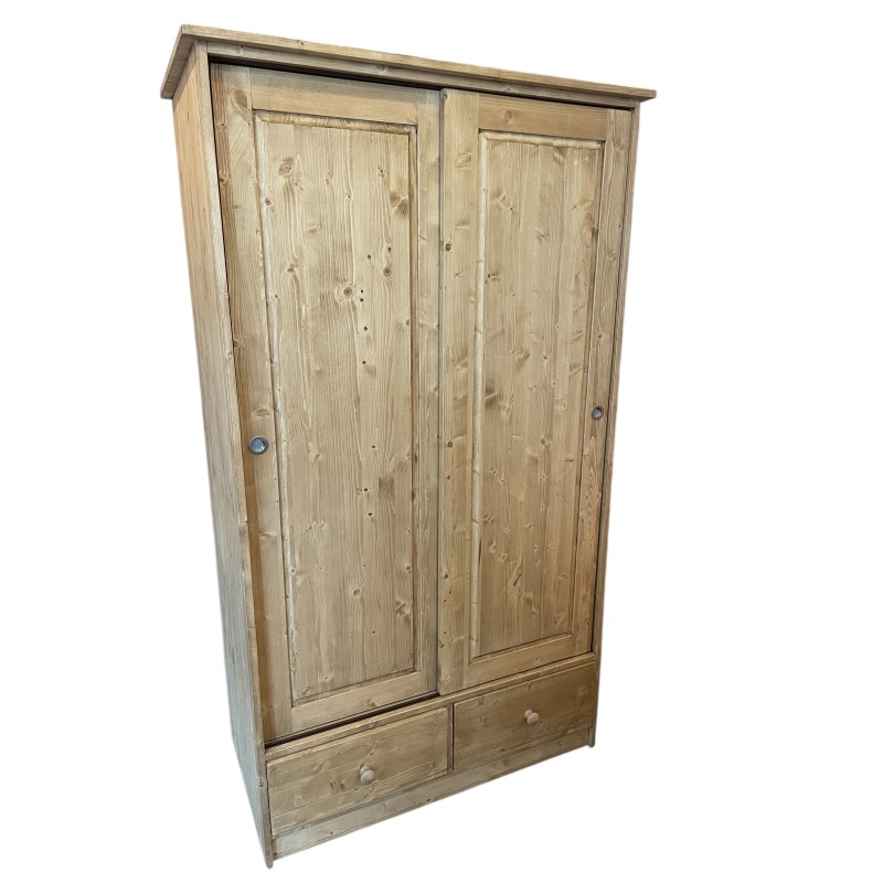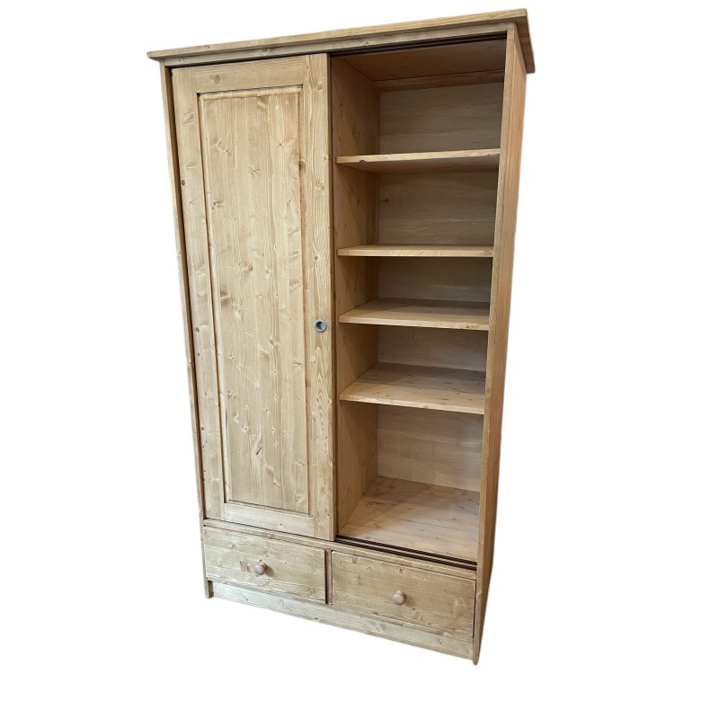 Voici armoire 2 portes coulissantes 2 tiroirs bois massif en sapin massif fabrication française.