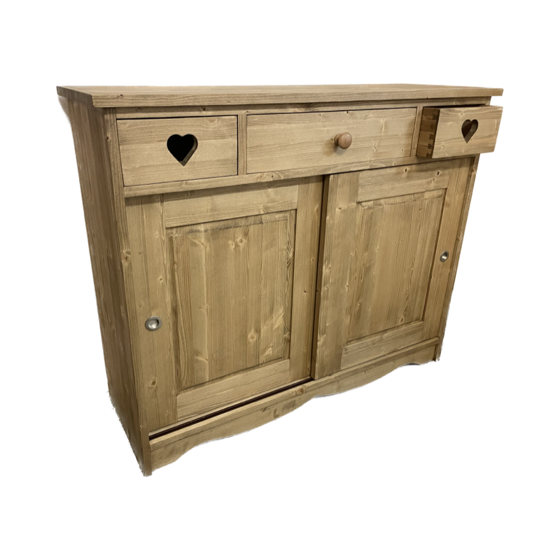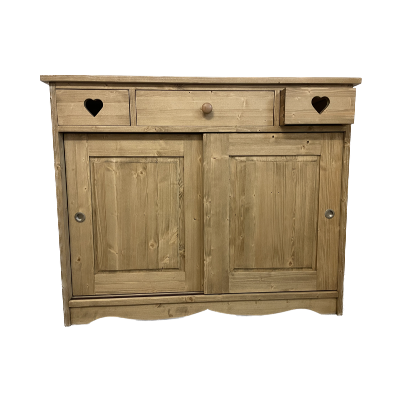 Voici notre bahut 2 portes coulissantes avec 3 tiroirs sapin massif fabrication française.