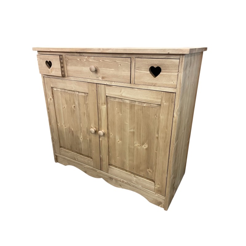Voici notre bahut 2 portes avec 3 tiroirs sapin massif fabrication française.