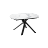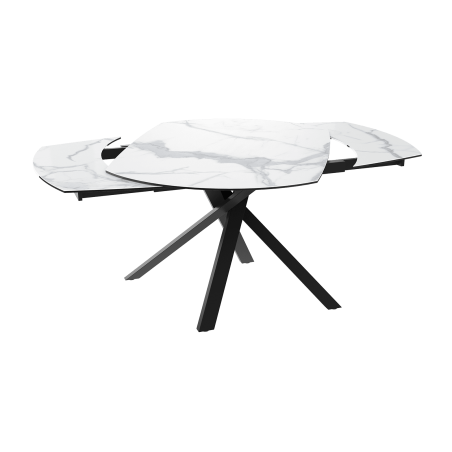 Son plateau est assemblé en céramique Marbre Calcatta de 6 mm d’épaisseur collé sur un verre 6 mm.