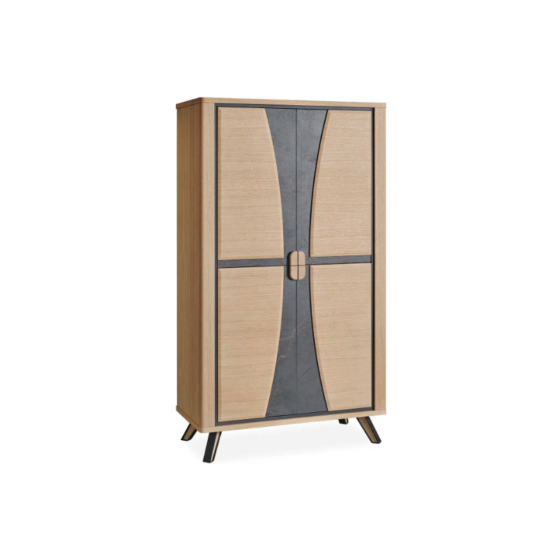 Voici notre armoire de salon en bois de chêne et métal. Véritable meuble de rangement, équipé de 2 portes