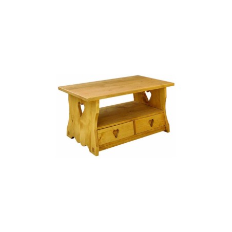 Voici notre table basse 2 tiroirs en sapin cirée massif