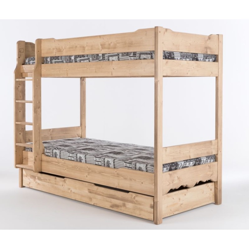Lit superposé sapin brossé sans matelas sans tiroirs, avec possibilité de les ajouter.