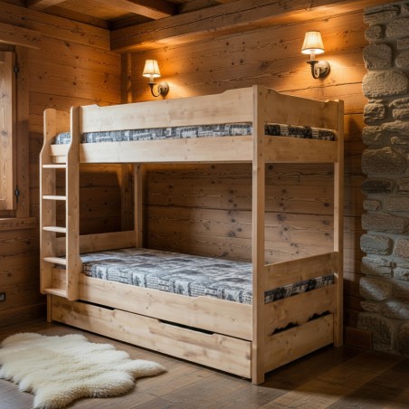 Notre lit superposé Megève peut s’accompagner d’un sommier gigogne à placer sous le lit inférieur.
