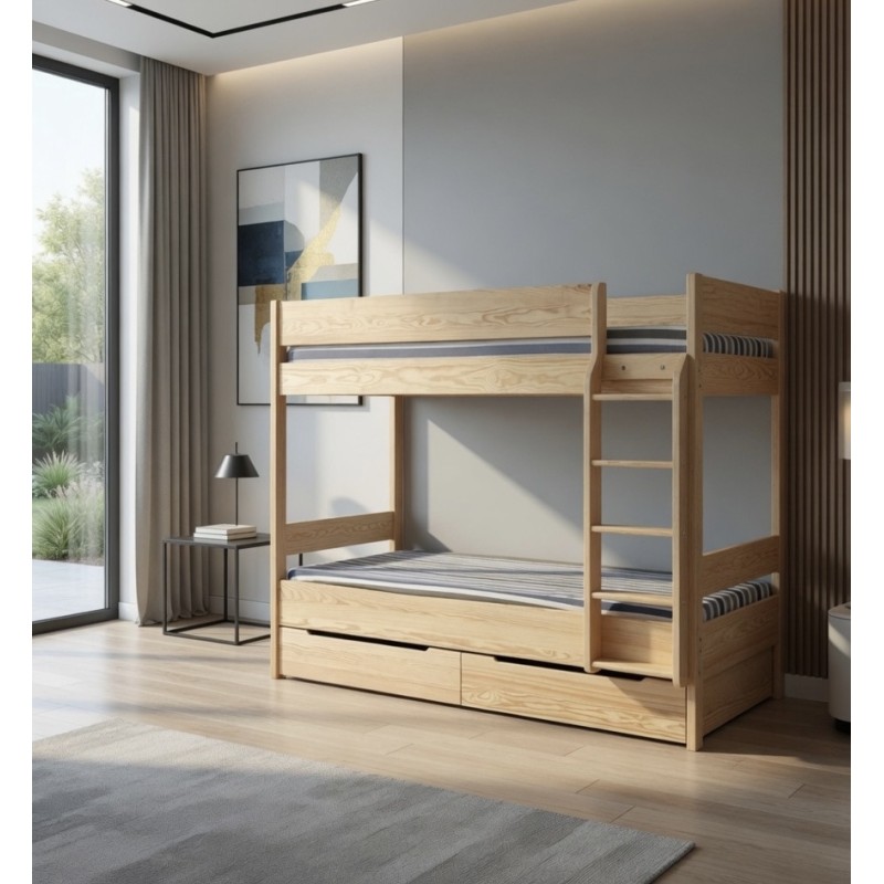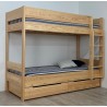 Lit superposé pin massif vernis naturel sans matelas sans tiroirs, avec possibilité de les ajouter.