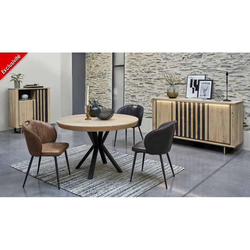 Voici notre buffet dune chêne et métal. équipé de 2 portes 1 niche.