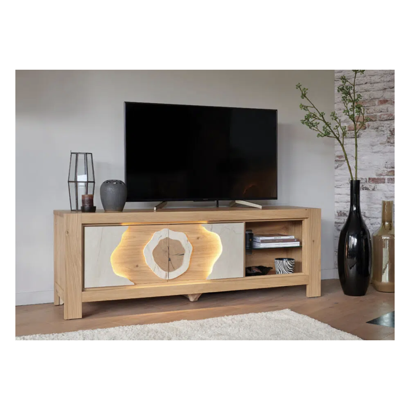 Meuble TV Minérale girardeau 2 portes chêne et céramique