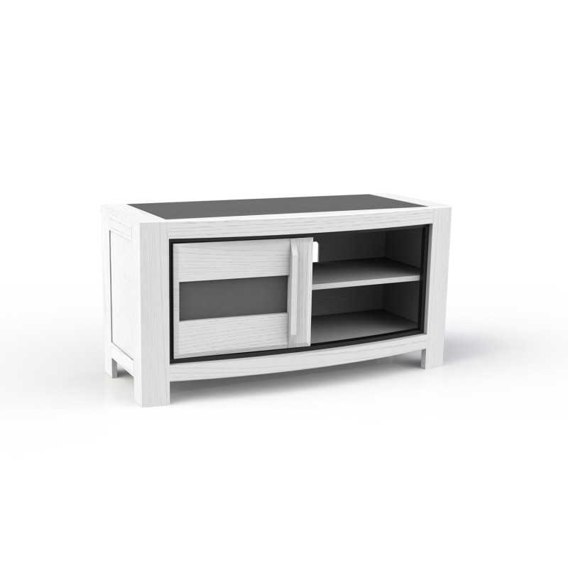 Meuble TV 1 porte décoration céramique avec incrustation céramique sur la façade et le dessus.