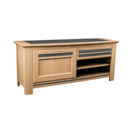Meuble TV 1 porte façade en courbe chêne et incrustation céramique