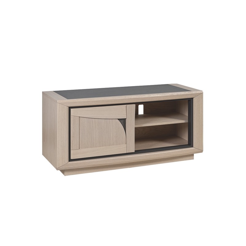 Meuble tv Girardeau Faro 1 tiroir chêne et céramiqueIncrustation céramique grise sur la façade et le dessus