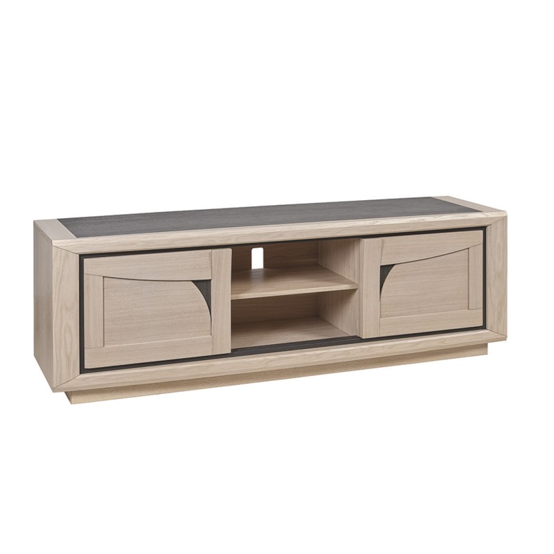 Meuble tv Girardeau Faro 2 portes 1 nicheIncrustation céramique grise sur la façade et le dessus