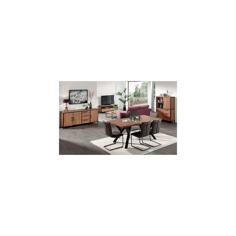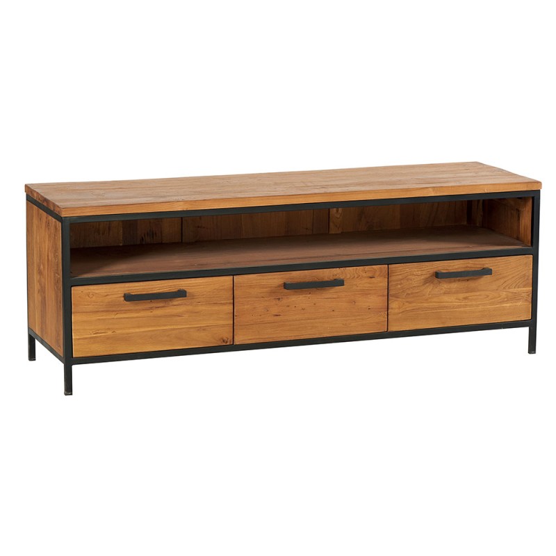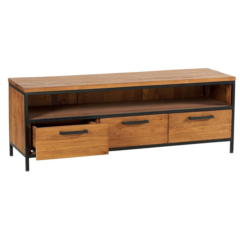 Meuble TV 3 tiroirs, 1 niche en teck massif recyclé.