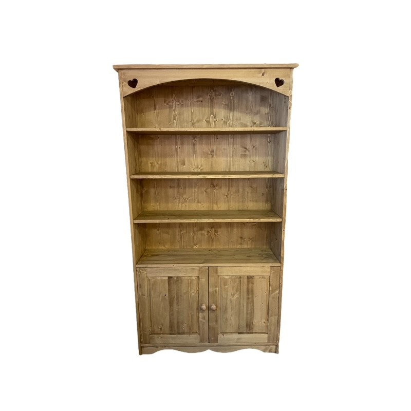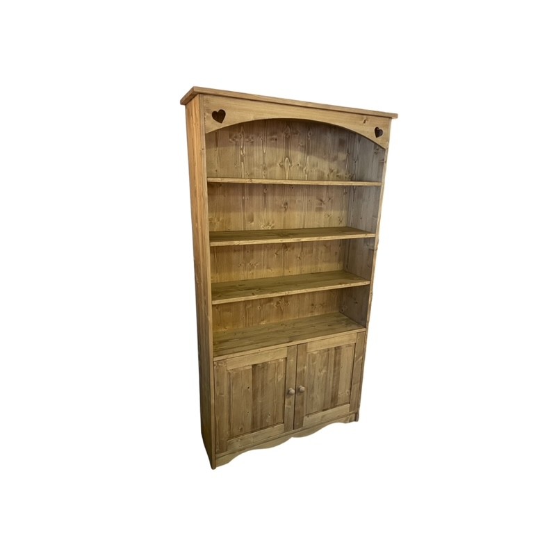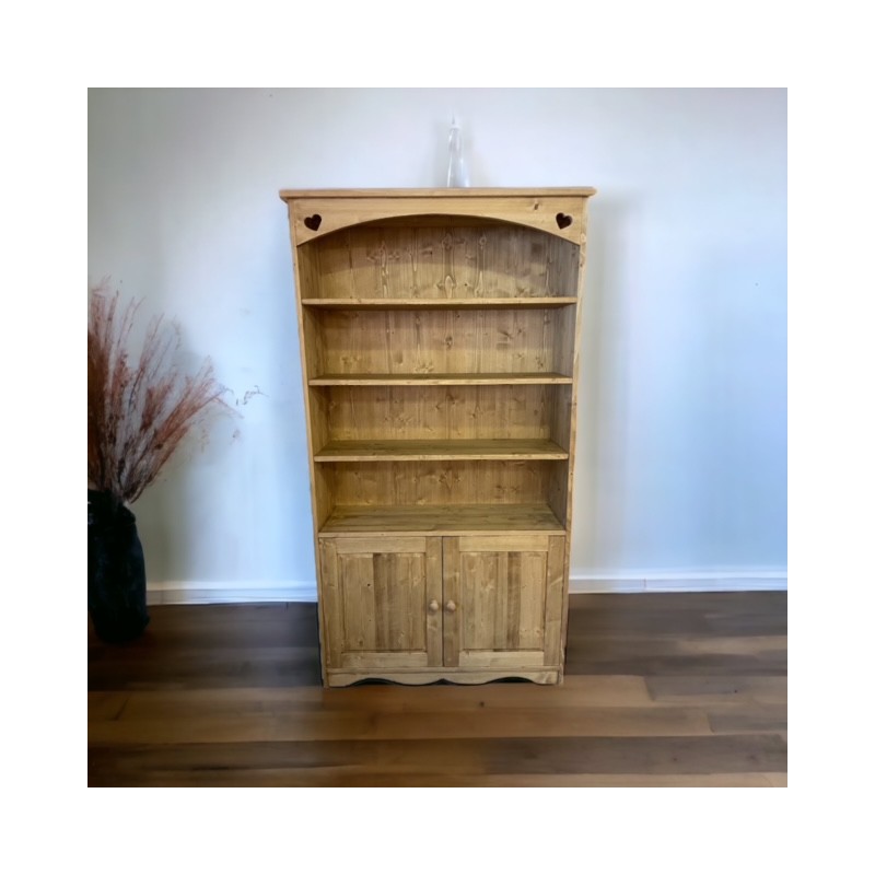 Bibliothèque 2 portes en bois de sapin cirée massif.