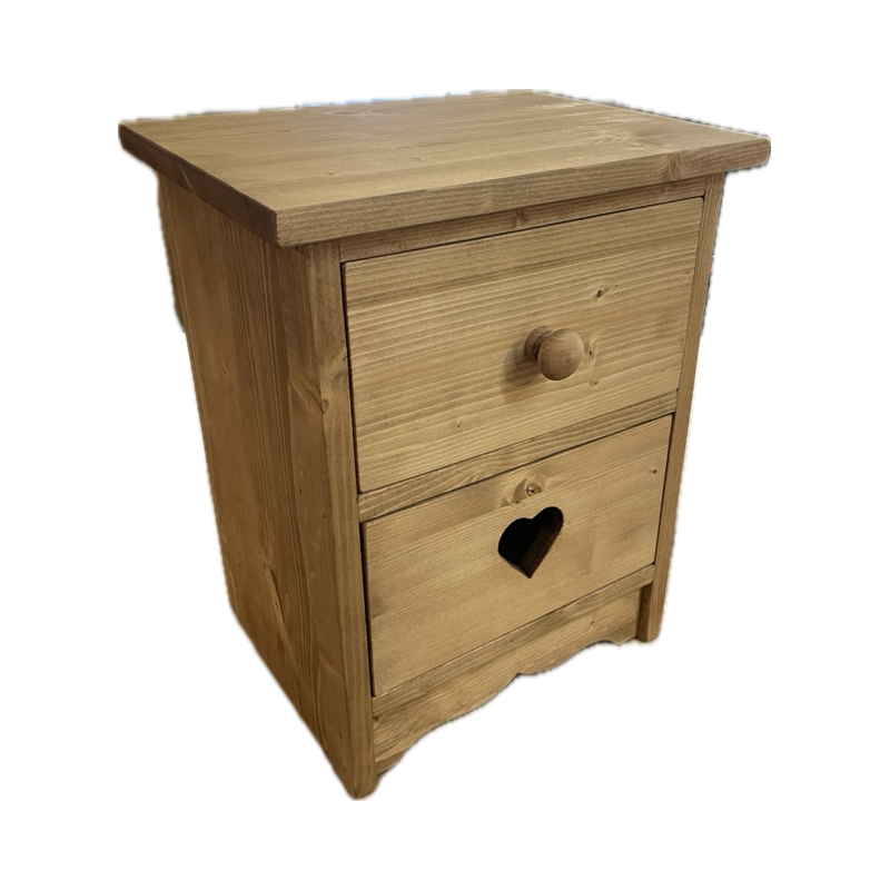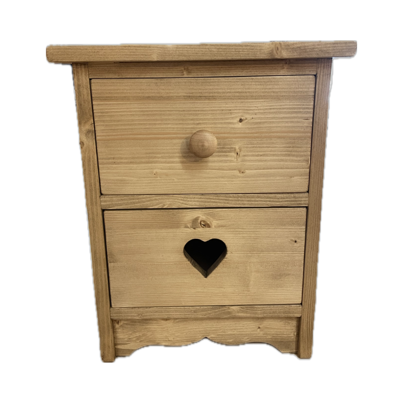 Voici notre chevet 2 tiroirs cœur et bouton montagne