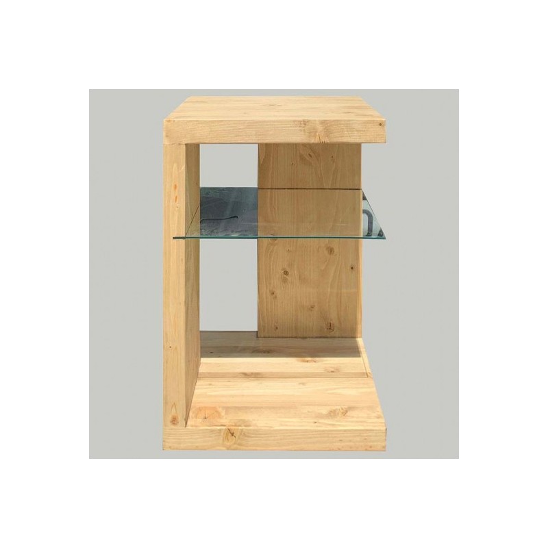 Voici notre chevet en sapin massif ciré avec une tablette en verre.