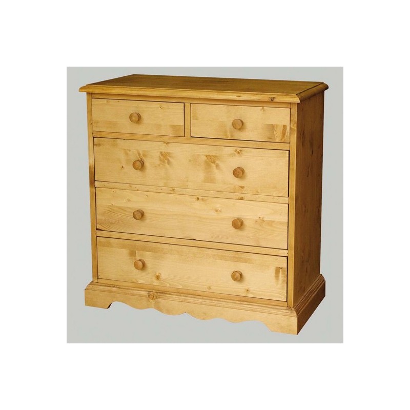Commode 5 tiroirs sapin massif cirée.