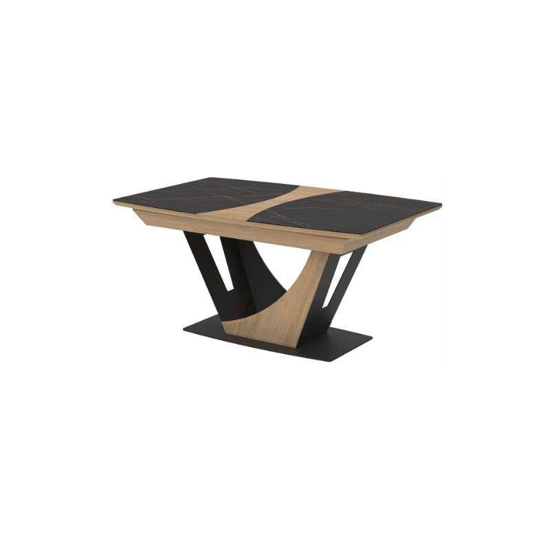 Son plateau en céramique hautement résistante repose sur une structure en chêne massif, gage de solidité et de raffinement. Le piétement central, véritable signature du design Omega, assure une stabilité optimale tout en apportant une touche de modernité affirmée.