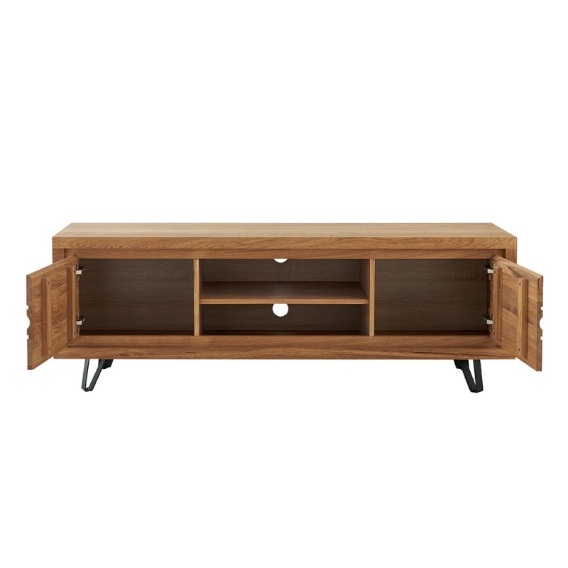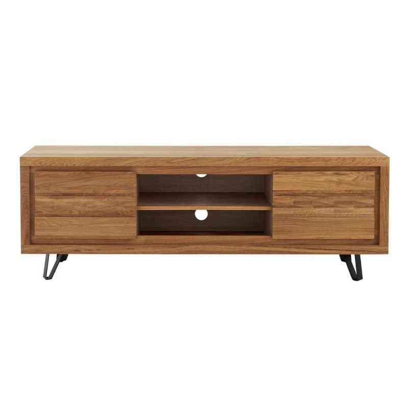 Meuble TV chêne massif huilé 2 portes 2 niches