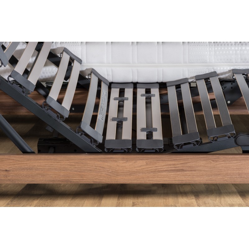 Sommiers: La zone bassin est renforcée et réglable en fermeté par raidisseurs sur contre-latte de confort.