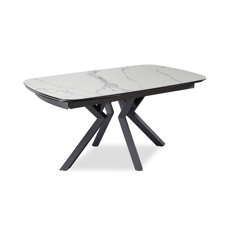 Voici notre table tonneau plateau céramique pied central en croix allonges intégrées en bout de 50cm chacune.