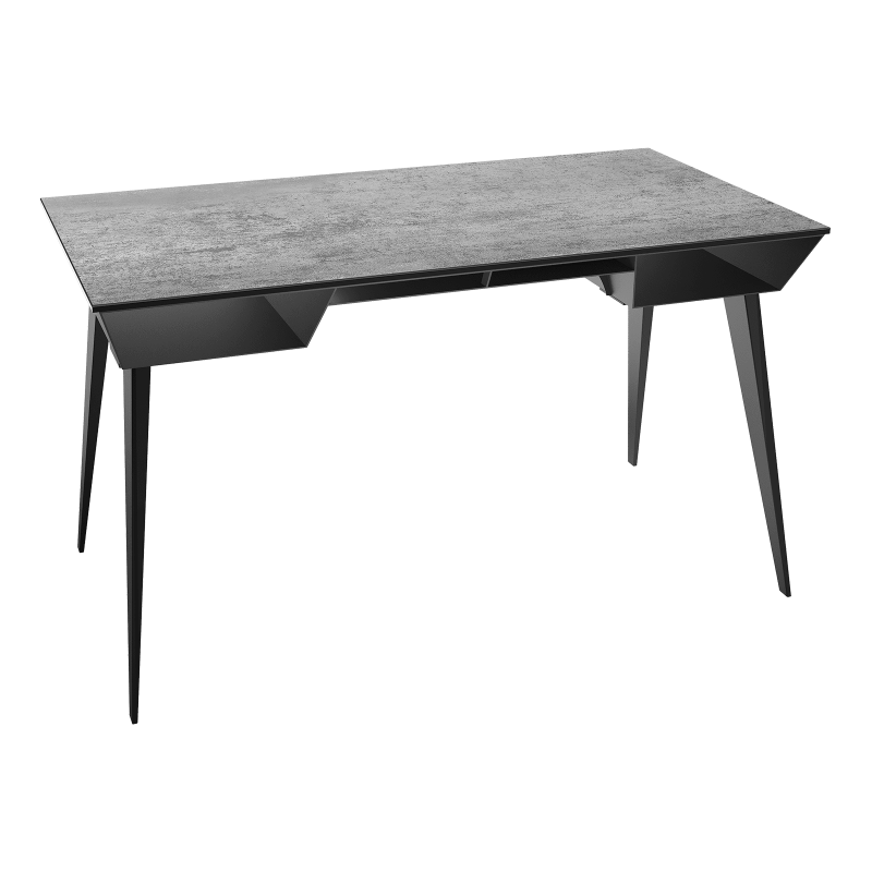 Bureau contemporain qui pourra prendre place facilement dans votre maison ou dans des espaces de travail. La céramique apporte de la luminosité à ce bureau, elle fait 3 mm d’épaisseur et est collée sur un vitrage de 8 mm.