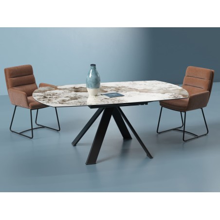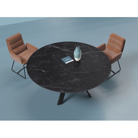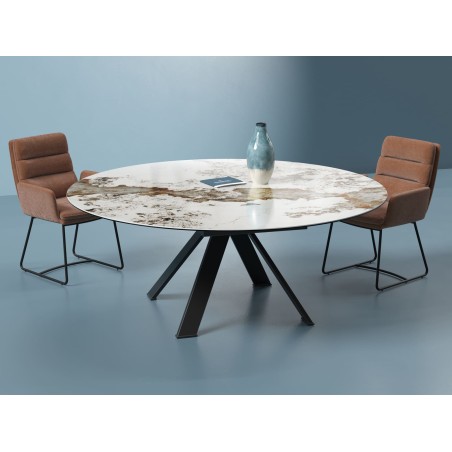 Apportez élégance et modularité à votre salle à manger avec la table Akante Austin. Cette table en céramique au design contemporain s’adapte à vos besoins grâce à ses deux allonges intégrées qui lui permettent de passer d’une forme rectangulaire à ronde en un clin d’œil.