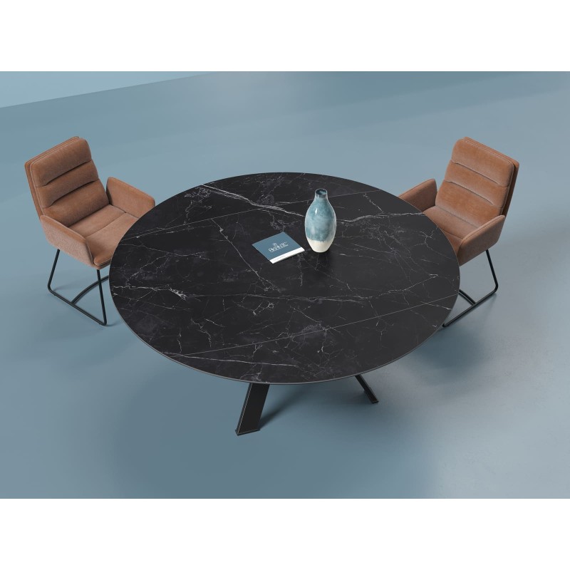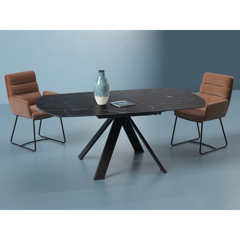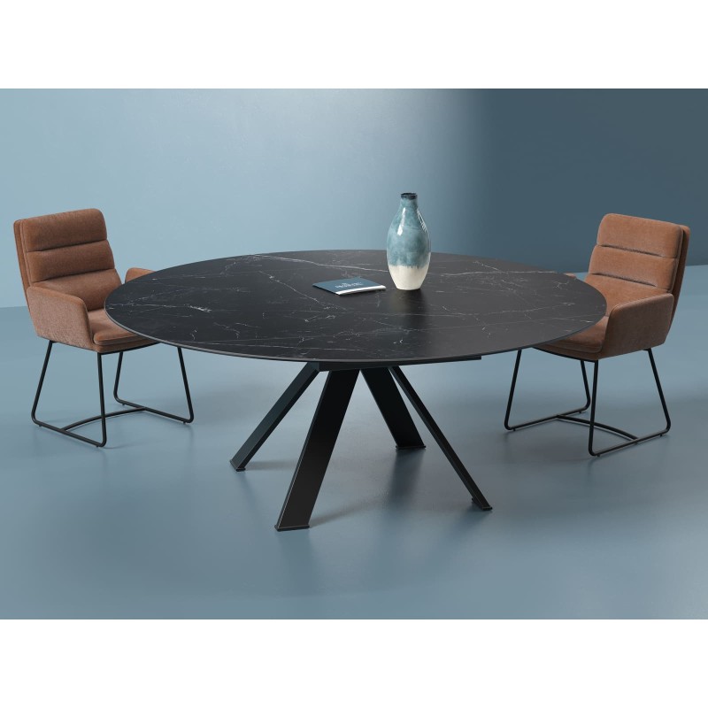 Apportez élégance et modularité à votre salle à manger avec la table Akante Austin. Cette table en céramique au design contemporain s’adapte à vos besoins grâce à ses deux allonges intégrées qui lui permettent de passer d’une forme rectangulaire à ronde en un clin d’œil.