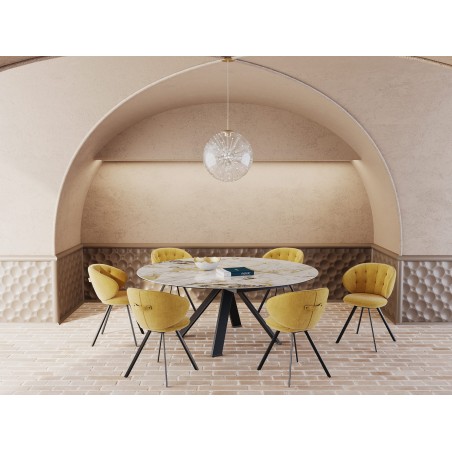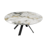 Apportez élégance et modularité à votre salle à manger avec la table Akante Austin. Cette table en céramique au design contemporain s’adapte à vos besoins grâce à ses deux allonges intégrées qui lui permettent de passer d’une forme rectangulaire à ronde en un clin d’œil.