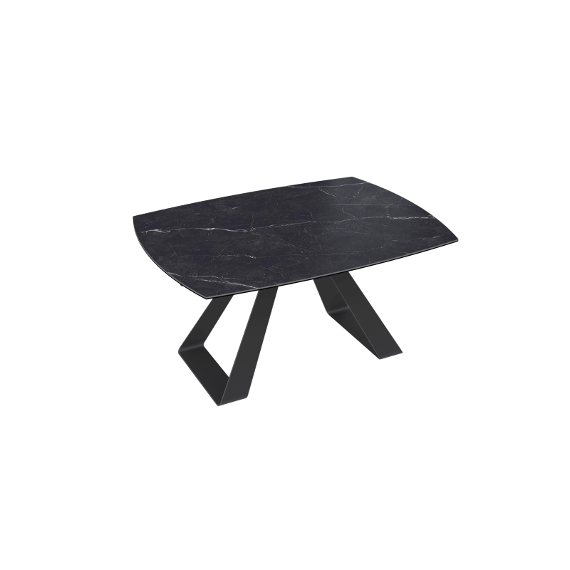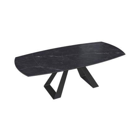 Son plateau en céramique Marbre Fiorentino de 6 mm est collé sur un verre de 8 mm.