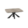 Elle possède un plateau en céramique collé sur verre trempé et un piètement en acier laqué noir, ce qui lui apporte solidité et élégance.