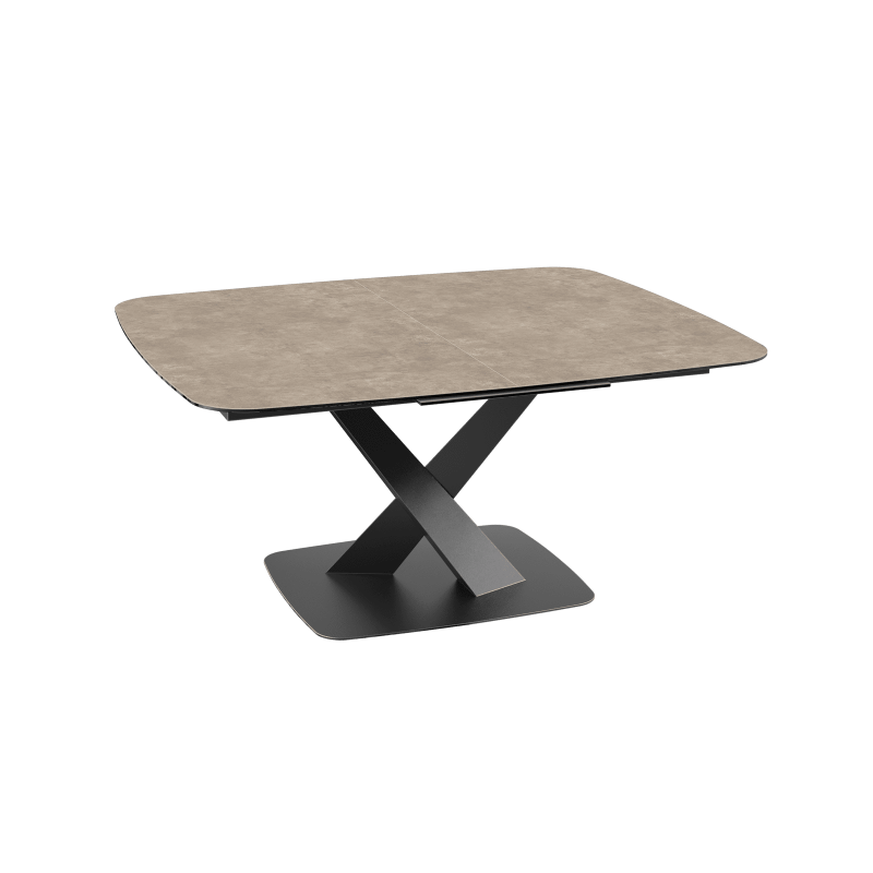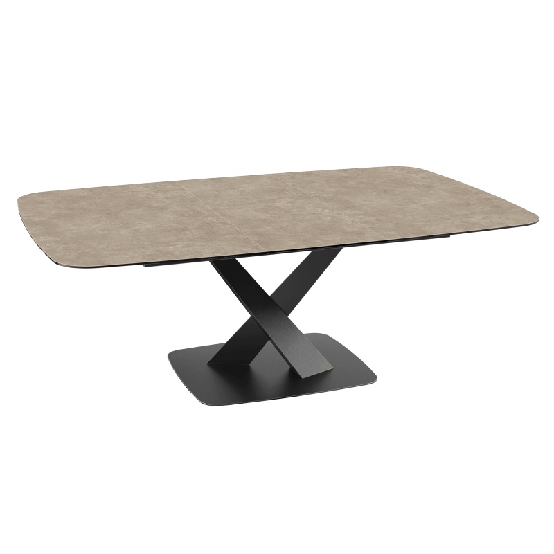 Découvrez la nouvelle table de repas Santiago, innovante et élégante. Dotée d’un mécanisme ingénieux, cette table possède une rallonge centrale automatique. Passez d’une surface de 160 x 135 cm à 210 x 135 cm en toute simplicité. Santiago vous permet d’inviter jusqu’à 10 convives. Ce modèle est conçu en céramique effet Acier de 3 mm, collée sur un verre de 8 mm. Son piétement à la fois moderne et élégant est en acier laqué noir mat.