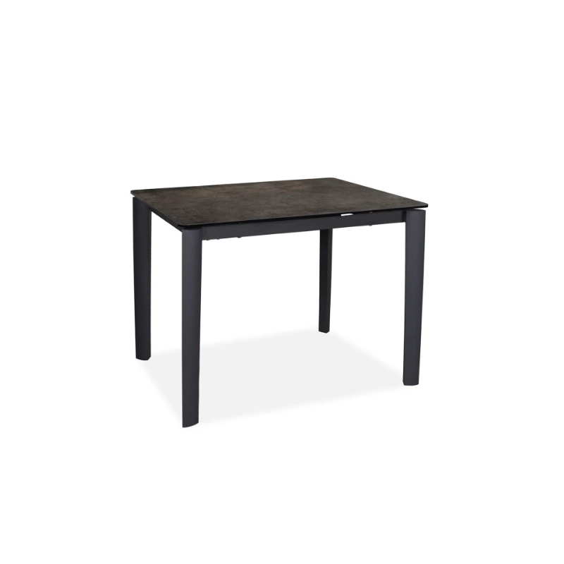 Voici notre table snack haute rectangulaire en céramique moucheté grise.