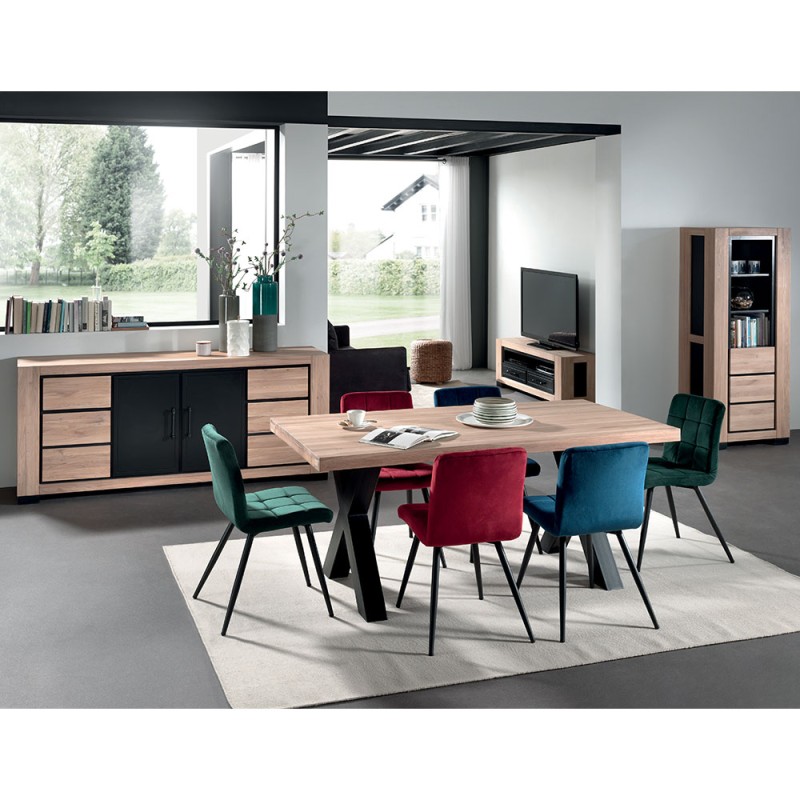 Voici notre table Louisa en chêne huilé naturel, pieds croix en métal.