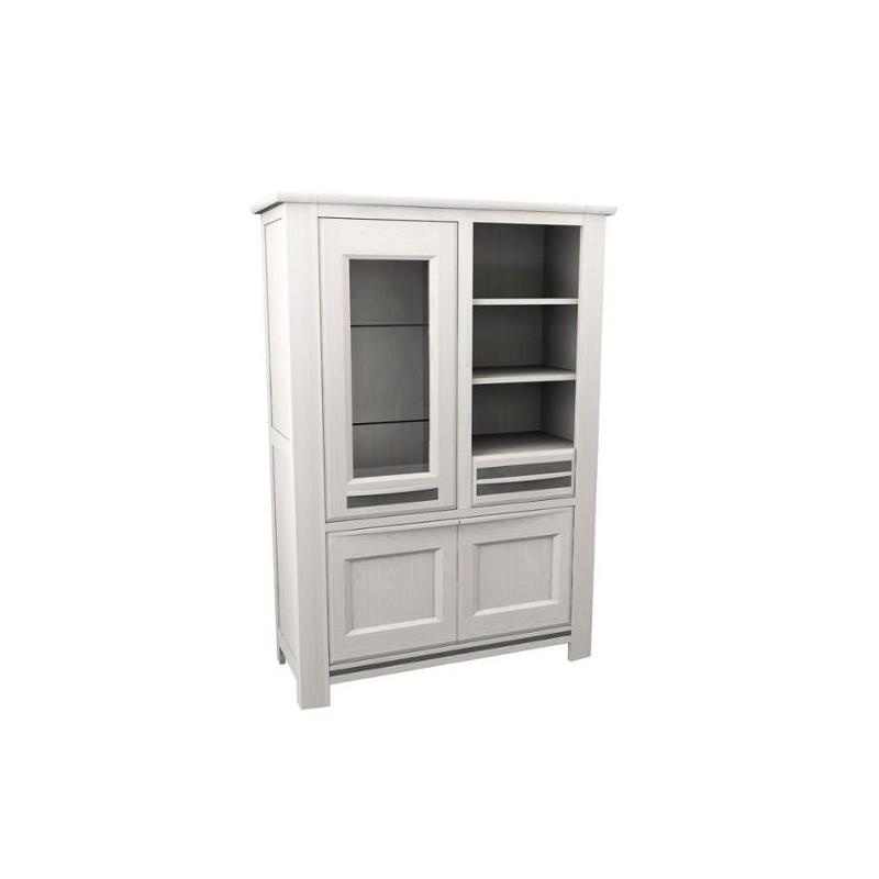 Voici notre vitrine Malaga façade en courbe chêne et incrustation céramique. Véritable meuble de rangement, équipé de 3 portes et un tiroir avec étagères et éclairage.